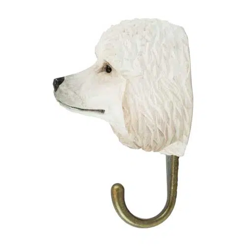 Garden Wildlifes håndskårne knage med en fin, hvid puddel er en både charmerende og praktisk indretningsdetalje, der er populær blandt både unge og gamle hundeelskere.