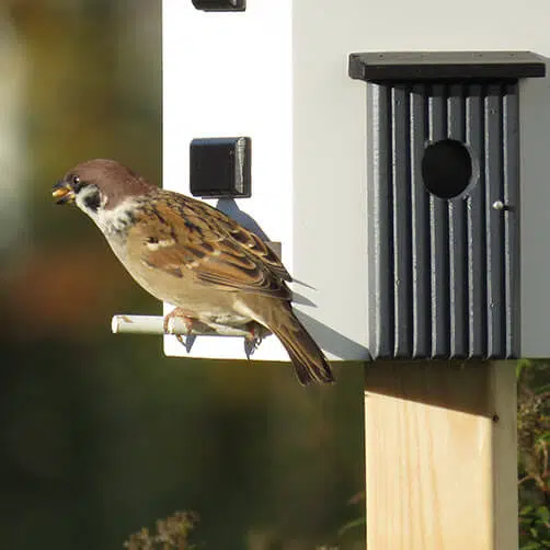 Men fuglenes ve og vel er naturligvis det vigtigste, og her er en vigtig detalje, at Multiholk husene har klatreriller på indersiden, så de små fugleunger kan komme op til udgangshullet, når det er tid til at lære at flyve.