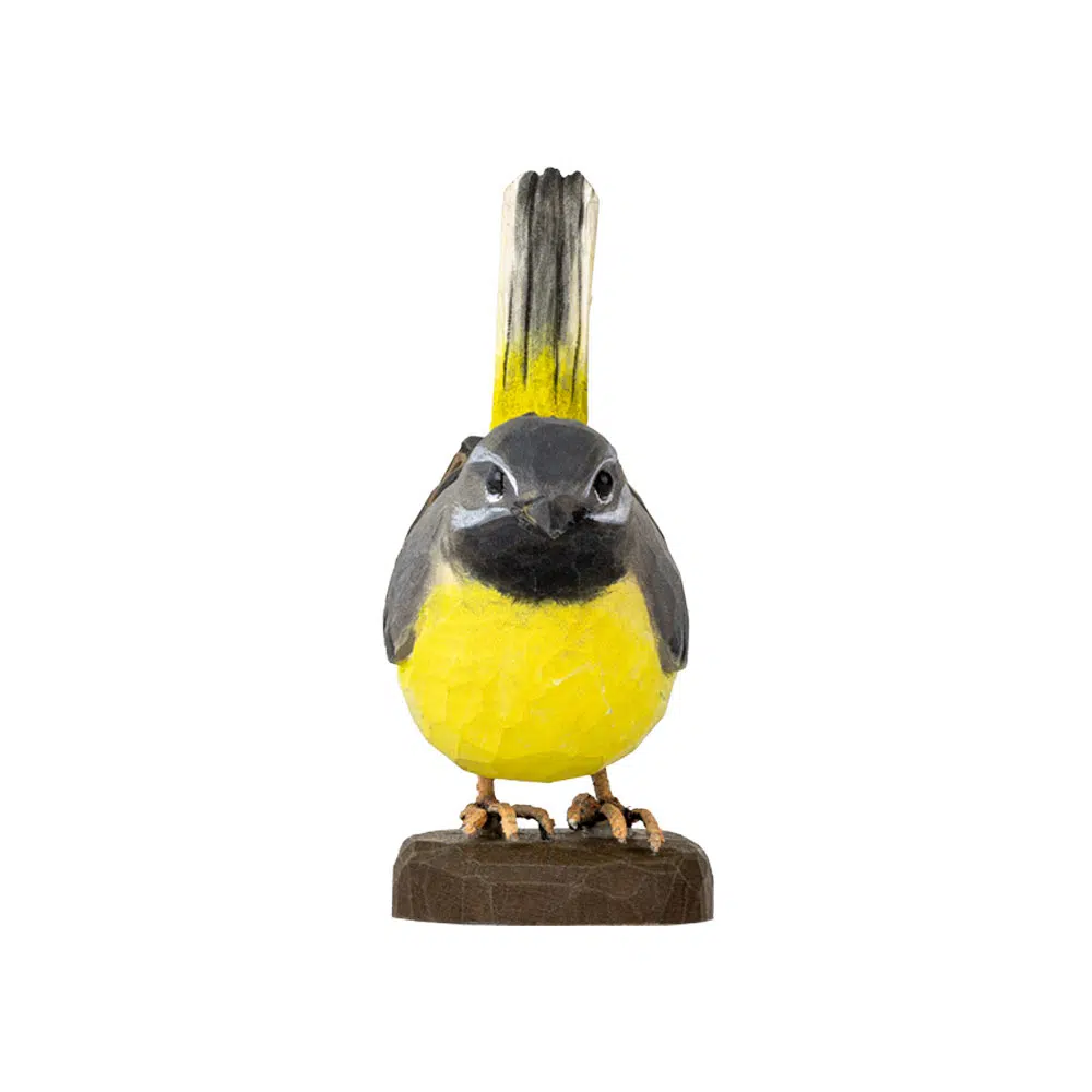 Udformningen af DecoBird Bjergvipstjert gengiver denne slanke fugls yndefulde figur med grå ryg, gul mave og karakteristisk hale. Hver fugl er håndskåret i træ og malet med pensel med vandbaseret maling af dygtige håndværkere.